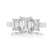 When one emerald isn't enough, try three! A beautiful modern engagement ring featuring three stone emerald cut diamonds. This ring features a 1.0 Carat emerald cut center stone and .50 ct emerald cut diamond on each side of the center stone.