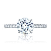 - This engagement ring can accommodate all diamond shapes and sizes, available by special order.
