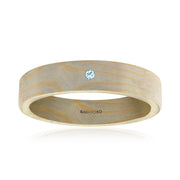 The Zambales Mokume Wedding Band is a compelling ring that speaks to the heart, has a 0.20 carat round shaped ethically mined diamond. A mixture of yellow and white gold with palladium and silver offers up a simply elegant design in 6 mm.