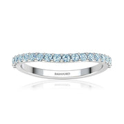 Simply elegant, this contoured pavé diamond ring showcases a single row of round brilliant-cut diamonds. The ring's curve contours around your diamond engagement ring to complement it.