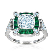 Cleopatra Diamond Ring with Emerald Accents