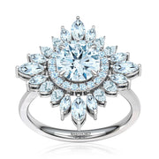 Alluring and elegant, this glamorous Art Deco Zelda diamond ring is set with a 0.75 carat round shaped CanadaMark™ Conflict free diamond with E color, SI1 clarity, and ideal cut, surrounded by scintillating marquise and pear shaped side diamonds, the sparkle of these enchanting diamonds adds a truly romantic look, creating a modern heirloom feel.