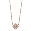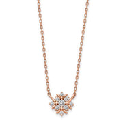 With a flurry of sparkle, this diamond pendant captures the of winter. Fashioned in precious 14K rose gold, this fanciful design features a sculpted snowflake dotted with shimmering lab created diamonds.
